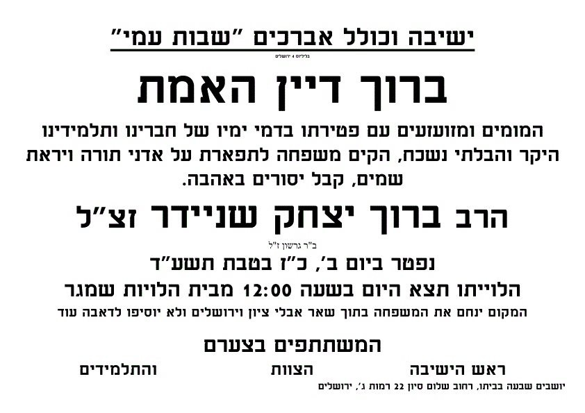 פטירתו הקשה, הינה מכה כואבת, לכל בני שבות עמי.